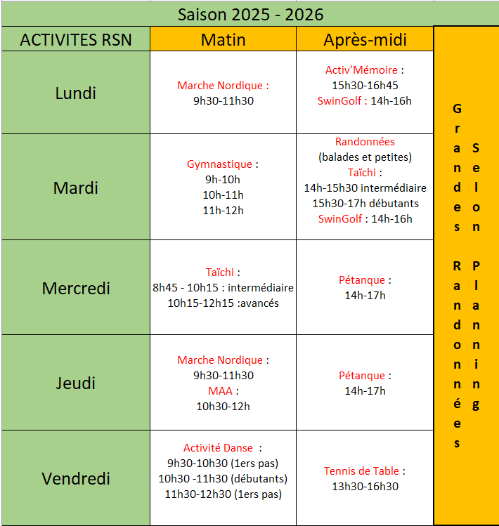 Vous pourrez débuter ou continuer une activité sportive adaptée à votre condition physique pour vous maintenir en pleine forme, mais aussi pour le plaisir de partager une ambiance conviviale.
