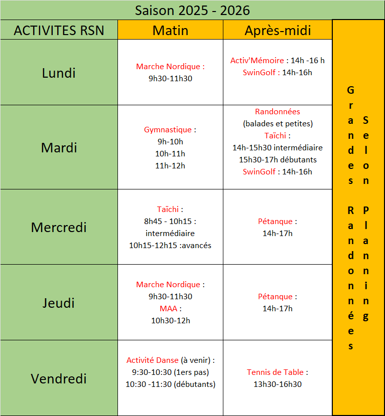 Vous pourrez débuter ou continuer une activité sportive adaptée à votre condition physique pour vous maintenir en pleine forme, mais aussi pour le plaisir de partager une ambiance conviviale.
